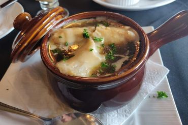 Fresh P.E.I mussels tossed in a white wine gorgonzola cream sauce topped with Asiago cheese, scallion and served Vienna garlic bread